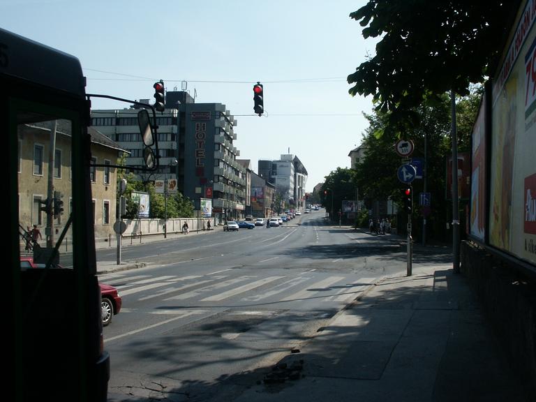 I'm just outside the Hotel Bara and am looking West. The hotel ahead and on the left is the Charles Hotel. Hotel Bara has no internet access but the Charles did; I spent many forints (600 ft. / half-hour) there before the conference started.