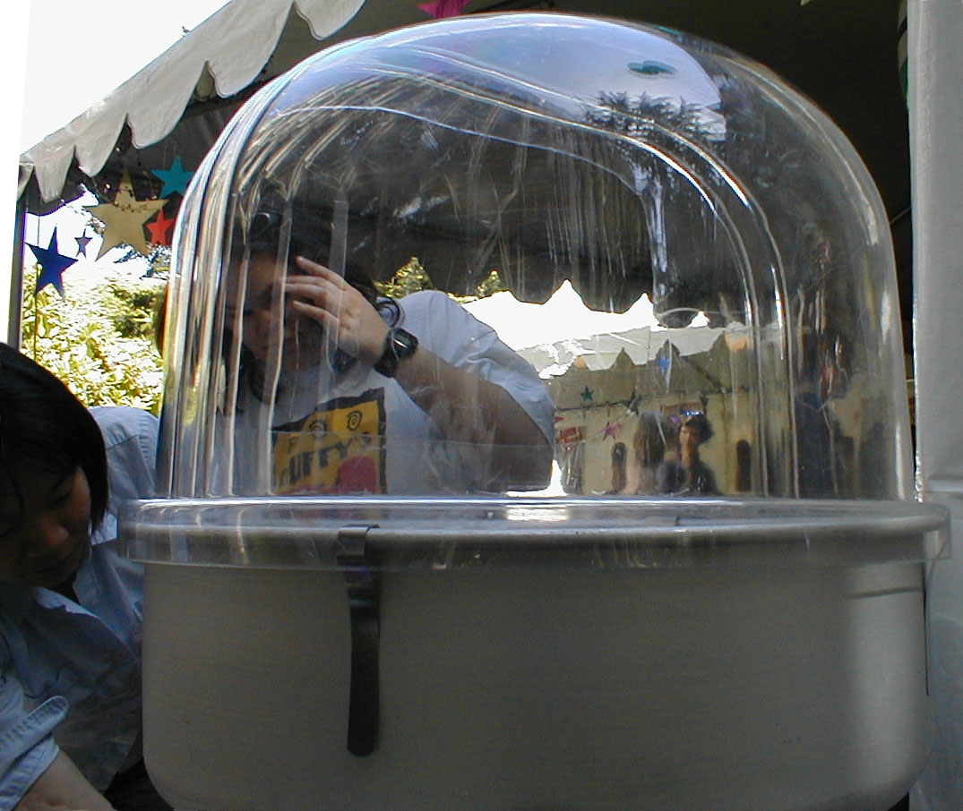 Receiving instructions for how to make cotton candy. It ends up being a very messy afair.